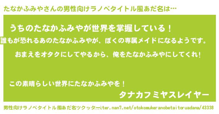 | 女子向けラノベタイトル風あだ名 | 『たなかふみや恋絵巻』 |