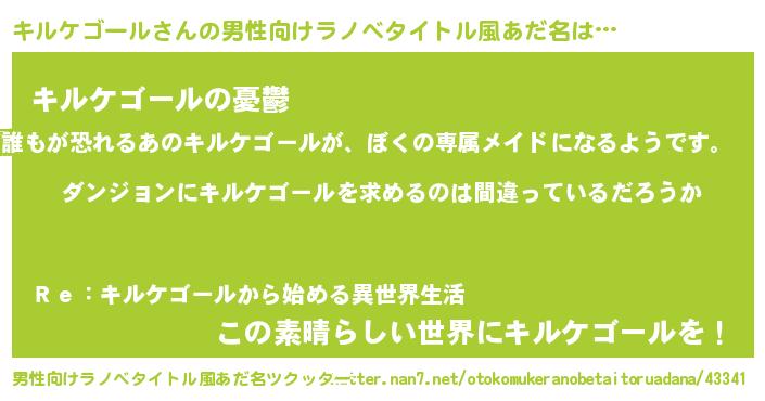 | 女子向けラノベタイトル風あだ名 | 『キルケゴールは平凡を望む』 |