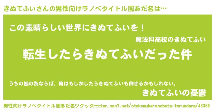 | 料理風あだ名 | 『きぬてふいごはん』 |