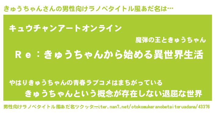 | ヒーロー風カッコイイあだ名 | 『サイバー戦士キュウチャン』 |