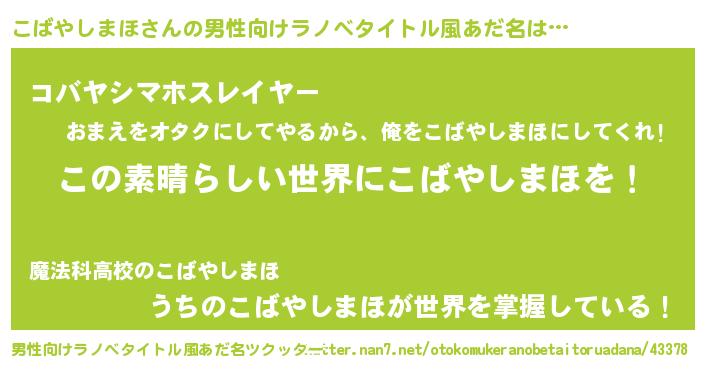 | 意味不明あだ名 | 『住所不定無職こばやしまほ(39歳)』 |