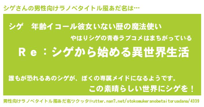 シゲさんの男性向けラノベタイトル風あだ名をツクッター!