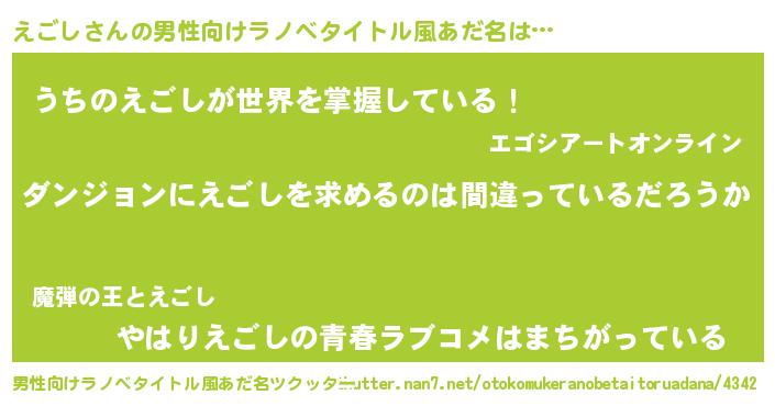 | ヘコむあだ名 | 『えごっ子』『酢こんぶ』『えごもー』 |