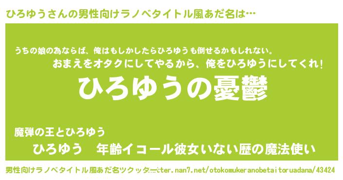 | 女子向けラノベタイトル風あだ名 | 『(仮)ひろゆうのやんごとなき事情』 |
