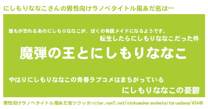 | 意味不明あだ名 | 『住所不定無職にしもりななこ(81歳)』 |