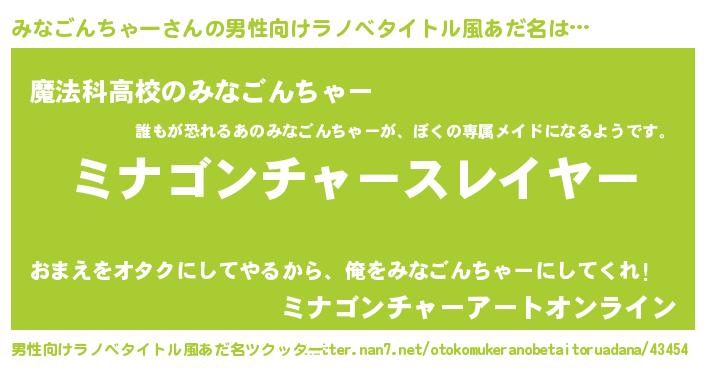 | 料理風あだ名 | 『みなごんちゃーごはん』 |