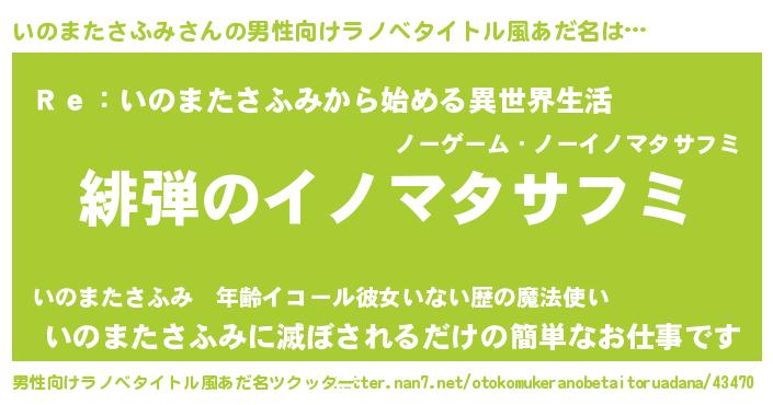 | 女子向けラノベタイトル風あだ名 | 『シンデレラいのまたさふみ家の靴箱館』 |