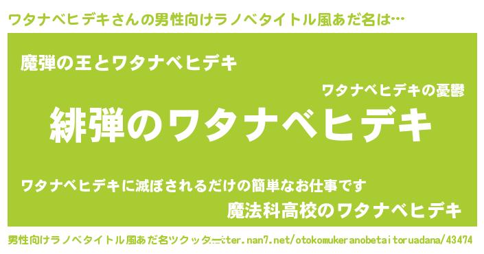 | 女子向けラノベタイトル風あだ名 | 『シンデレラワタナベヒデキ家の靴箱館』 |