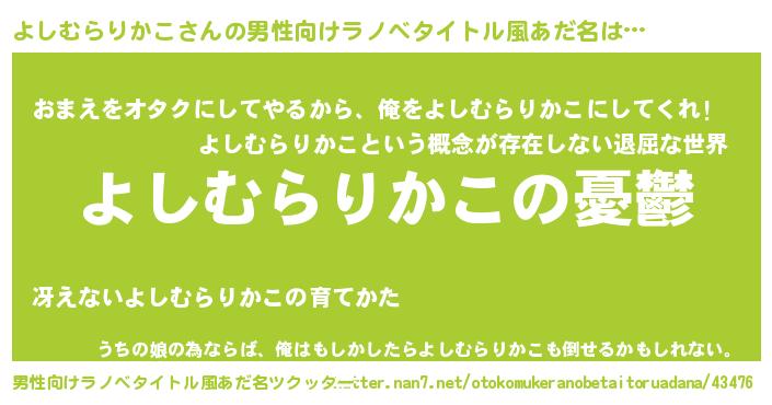 | 女子向けラノベタイトル風あだ名 | 『よしむらりかこ姫と円卓の騎士』 |