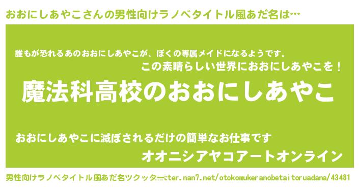 | 意味不明あだ名 | 『自称おおにしあやこ』 |