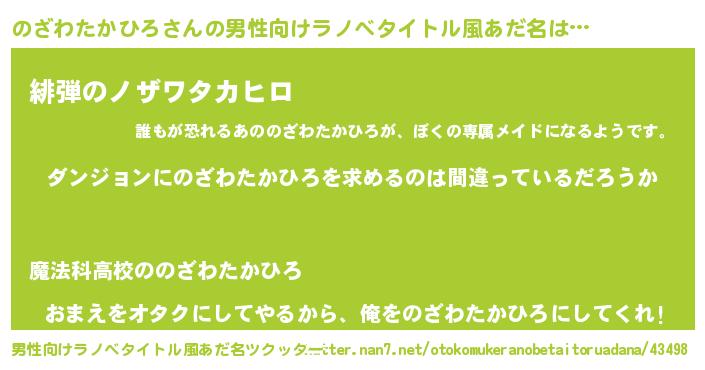 | 女子向けラノベタイトル風あだ名 | 『のざわたかひろは平凡を望む』 |