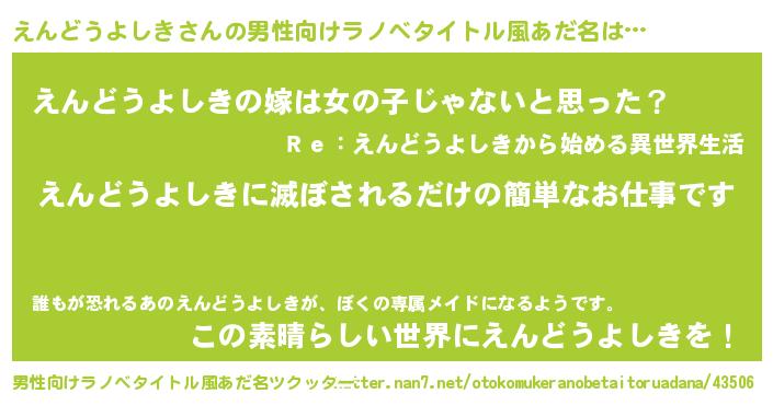 | ヘコむあだ名 | 『えんを』『えんどうよしき(遠い目)』 |