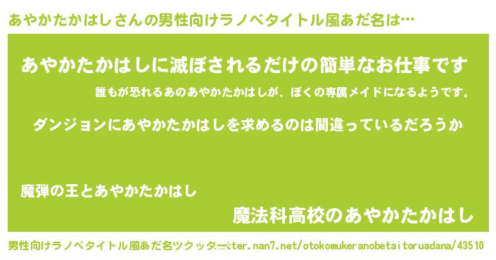| 女子向けラノベタイトル風あだ名 | 『あやかたかはしは平凡を望む』 |