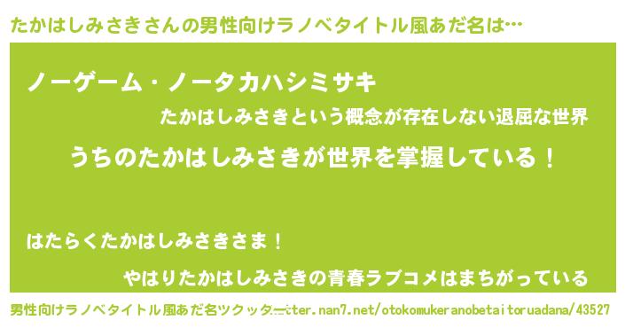 | ヘコむあだ名 | 『酢こんぶ』『たかはしみさき(笑)』 |