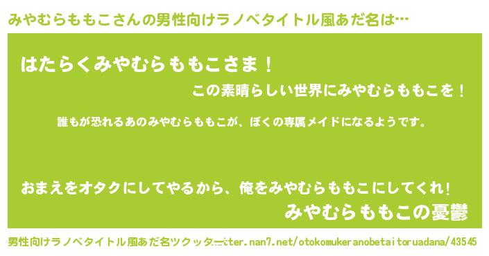 | 女子向けラノベタイトル風あだ名 | 『みやむらももこの契約王妃』 |