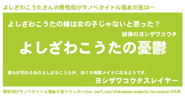 | 女子向けラノベタイトル風あだ名 | 『(仮)よしざわこうたのやんごとなき事情』 |