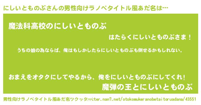 | 意味不明あだ名 | 『にしいとものぶフォーエバー』 |