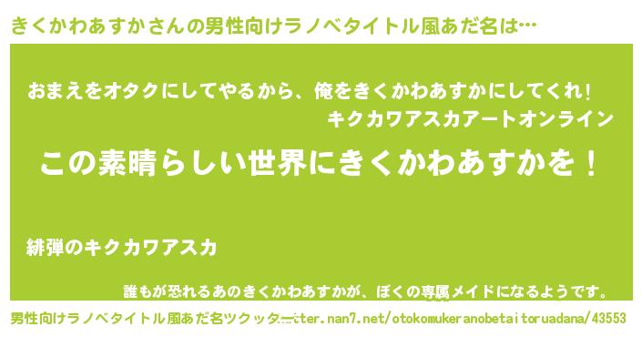 | 意味不明あだ名 | 『住所不定無職きくかわあすか(7歳)』 |