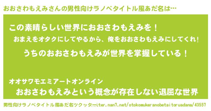 | 意味不明あだ名 | 『住所不定無職おおさわもえみ(85歳)』 |