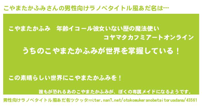 | 女子向けラノベタイトル風あだ名 | 『男装こやまたかふみの憂鬱な任務』 |