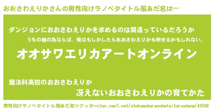 | 胡散臭い通販商品みたいなあだ名 | 『億万長者になれる霊験あらたかなお札…その名も「おおさわえりか」』 |