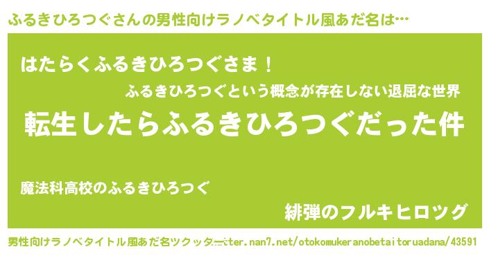 | 胡散臭い通販商品みたいなあだ名 | 『来世でも幸せになれる水素水…その名も「ふるきひろつぐ」』 |