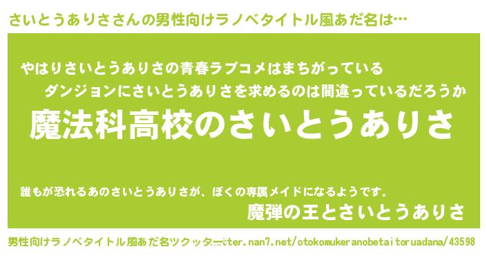 | 女子向けラノベタイトル風あだ名 | 『さいとうありさなんてお断りですっ。』 |