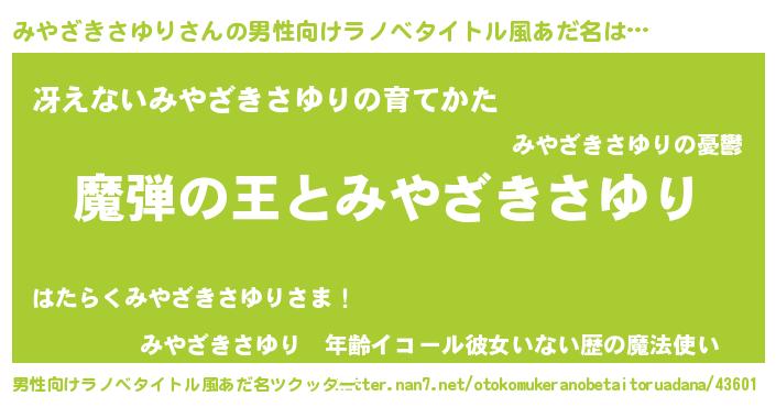 | 女子向けラノベタイトル風あだ名 | 『みやざきさゆりが死なない童話 林檎のみやざきさゆりの診療簿』 |