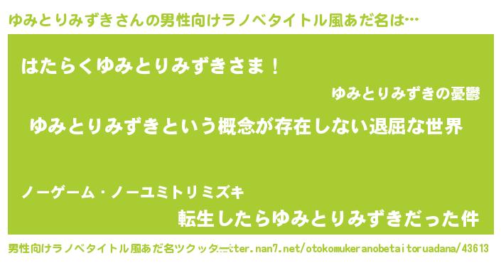 ゆみとりみずきさんの男性向けラノベタイトル風あだ名をツクッター!