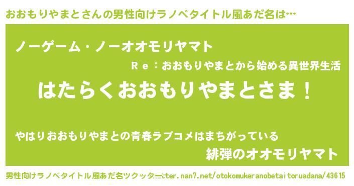 | 女子向けラノベタイトル風あだ名 | 『首の姫と首なしおおもりやまと』 |