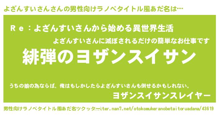 | 恥ずかしいあだ名 | 『ヨザンスイサンデラックス』『よざちん』 |