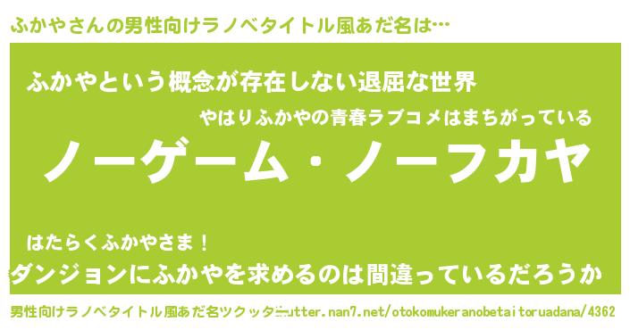 ふかやさんの男性向けラノベタイトル風あだ名をツクッター!