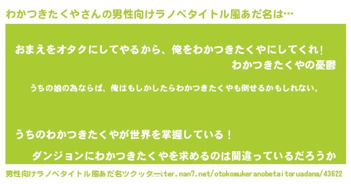 | ファンタジー風あだ名 | 『エターナルワカツキタクヤー』 |