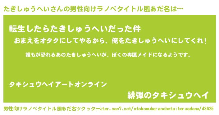 | 意味不明あだ名 | 『永久保存たきしゅうへい』 |
