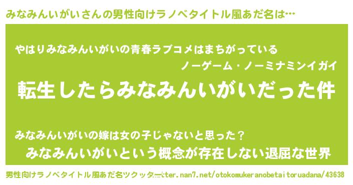 | 欧米人風あだ名 | 『トリンドルみなみんいがい』 |