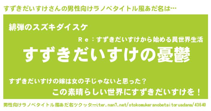 | 女子向けラノベタイトル風あだ名 | 『(仮)すずきだいすけのやんごとなき事情』 |