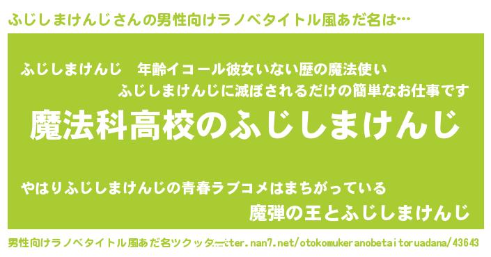 | 意味不明あだ名 | 『自称ふじしまけんじ』 |