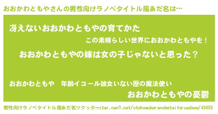 | 意味不明あだ名 | 『とにかく怪しいおおかわともや』 |