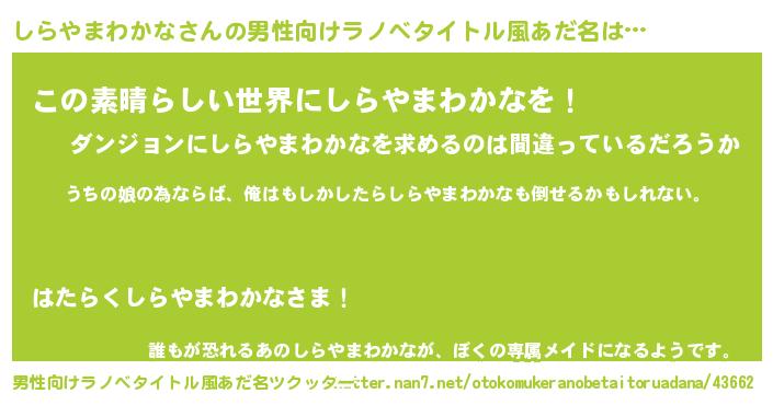 | 意味不明あだ名 | 『しらやまわかなフォーエバー』 |