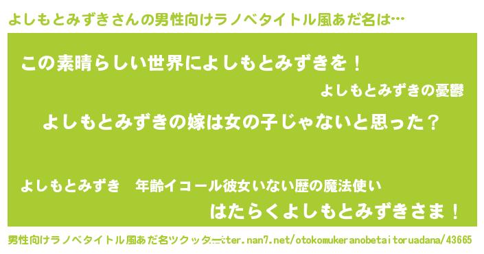 | 女子向けラノベタイトル風あだ名 | 『よしもとみずきの卵を拾いまして』 |