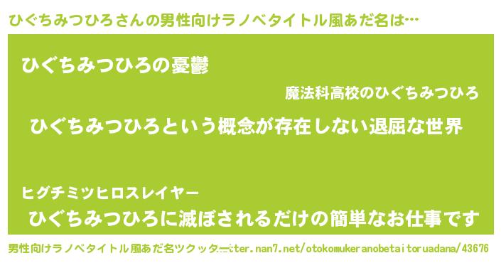 | 意味不明あだ名 | 『永久保存ひぐちみつひろ』 |