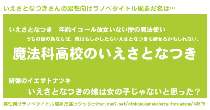 | 意味不明あだ名 | 『自称いえさとなつき』 |