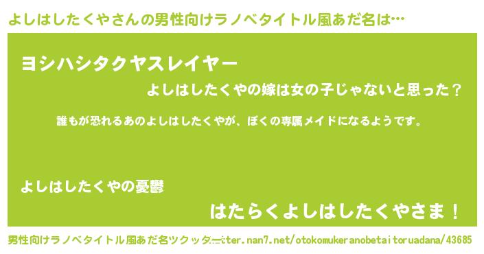| ヘコむあだ名 | 『よしはしたくや(苦笑)』『よしっぺ』 |