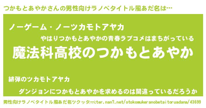 | 意味不明あだ名 | 『自称つかもとあやか』 |