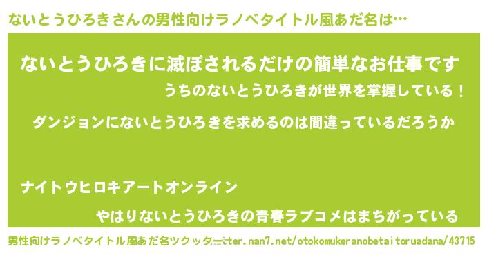 | 胡散臭い通販商品みたいなあだ名 | 『信頼と実績のネックレス…その名も「ないとうひろき」』 |