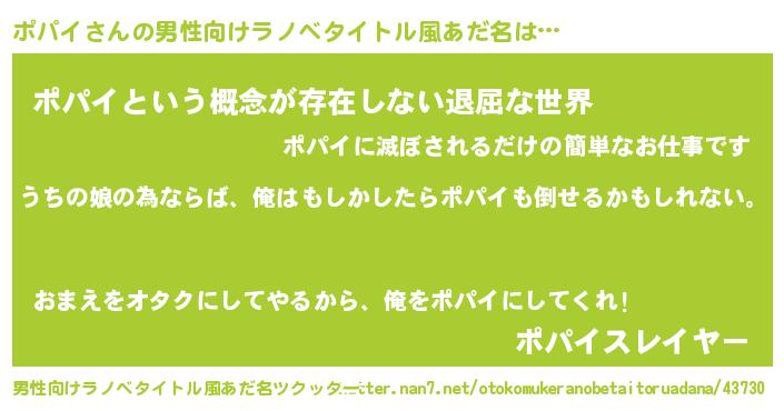 | ファンタジー風あだ名 | 『エターナルポパイー』『ポパディッシュ』 |