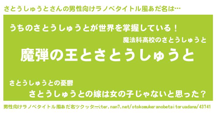 | 女子向けラノベタイトル風あだ名 | 『乙女ゲームの破滅フラグしかない悪役さとうしゅうとに転生してしまった…』 |