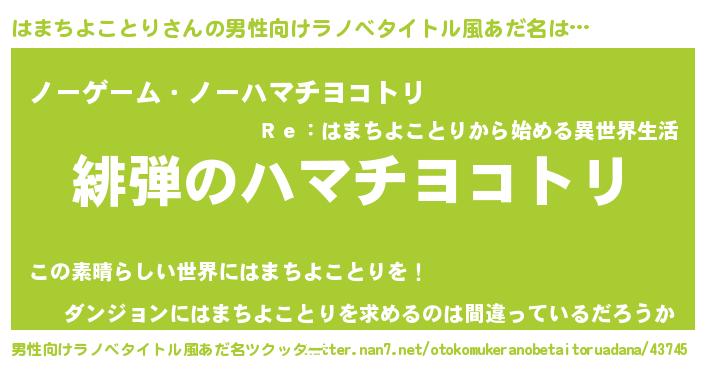 | 意味不明あだ名 | 『眠気覚ましガムはまちよことり味』 |