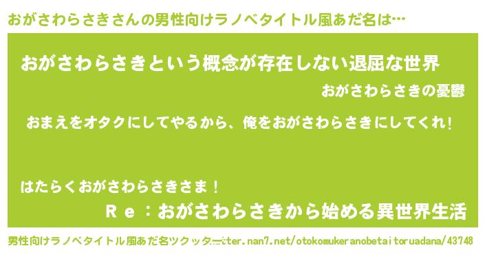 | 可愛いあだ名 | 『おがちゅっちゅ』『おがさわらさきママ』 |
