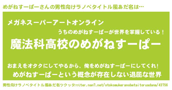 | 女子向けラノベタイトル風あだ名 | 『めがねすーぱーなんてお断りですっ。』 |